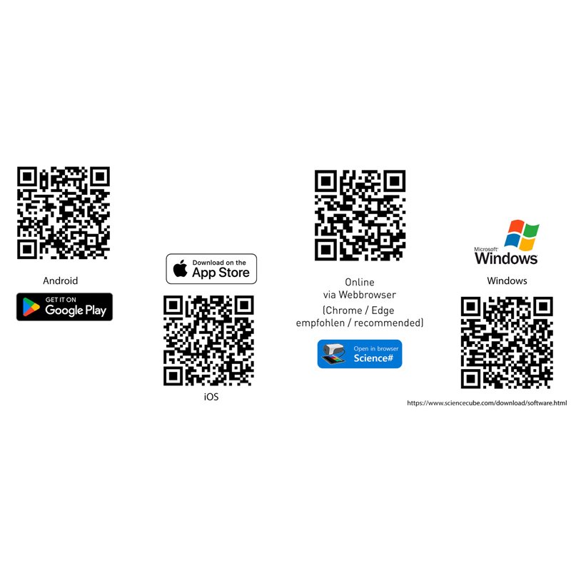 Natürlich kann dieser WLD-SMART-Sensor auch drahtlos über Bluetooth oder kabelgebunden über USB mit der kostenlosen App „Science#“ auf mobilen Endgeräten wie Tablets oder iPads (Android oder iOS) oder Computern (Windows oder Mac) verwendet werden.